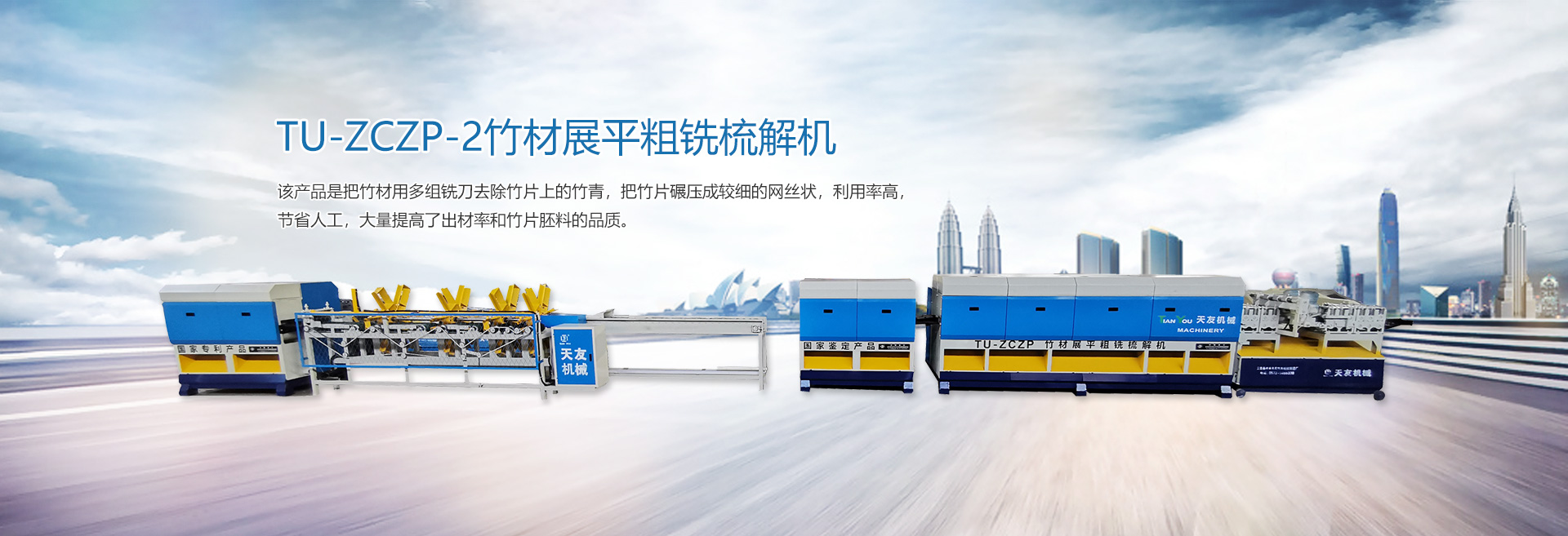本廠生產(chǎn)的“天友”牌竹木兩大系列機械產(chǎn)品,品種齊全,包括(竹木機械、重竹設備、竹筷成套機械、牙簽成套機械、刨篾機、包裝機、竹地板成套設備、竹涼席成套設備、砂光機、破竹機、拉絲機、精刨機、帶節(jié)雙生筷、天削筷機械等) ,結構新穎,質量上乘,以完善的售后服務體系深受客戶的好評。